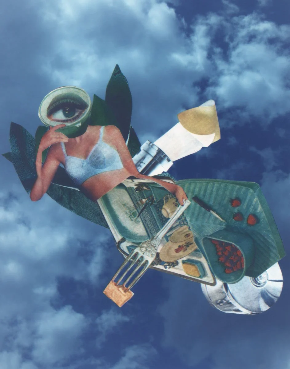 It Met Your Spec… is a work in progress that utilizes camera-less photography and darkroom photomontage techniques to construct imagery that reflects on the way scientific and consumer technologies are marketed for gender specific audiences. Domestic contraptions, body parts, survivalist tools, flora, and machines used for space exploration are combined to create suggestive biomorphic entities. Titles hold double meaning, inspired by advertisements found in science journals and home magazines. The project explores anxieties related to motherhood and the notion of women’s work. Images are based on personal experience of body transformation, medical fear, and domestic responsibility, while connecting to collective issues of labor and body agency for female identifying persons. The photographs are color separation prints created with a homemade registration system, a technical challenge and contemporary process that engages with the history of color photography.